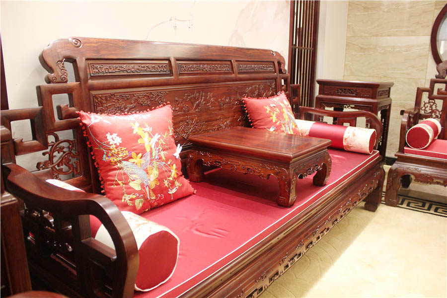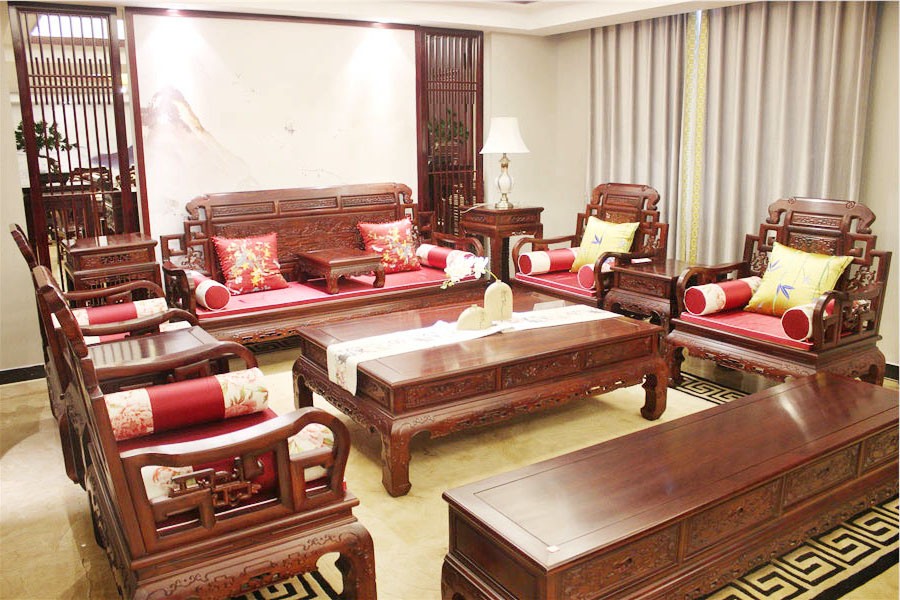 生活犹如原木,看似简单,万千细节却在其中;看似安然,却时刻与你一起呼吸自然。  此款红酸枝材料的六合同春沙发一定给您的家中增添光彩!